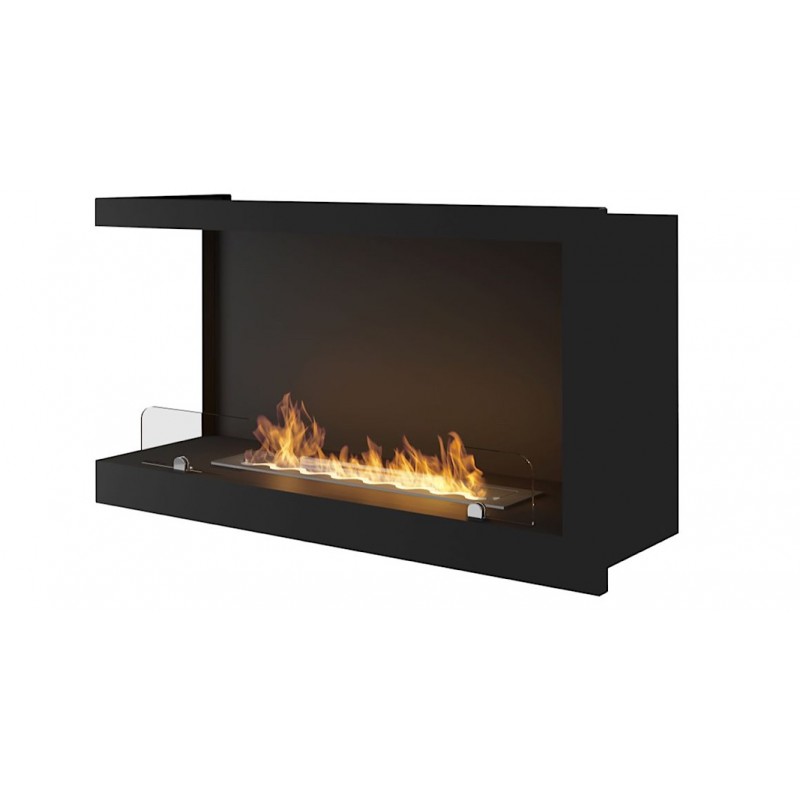 Inside C1000 version 1 är en etanolkamin designad för att installeras i en förberedd nisch. Genom att använda ett speciellt förstärkt stål var det möjligt att erhålla den mest minimalistiska formen med endast ett stålskikt. Eldstadens utformning gör att ni kan se elden från tre sidor.